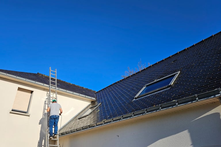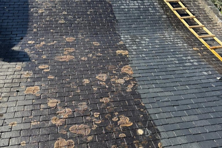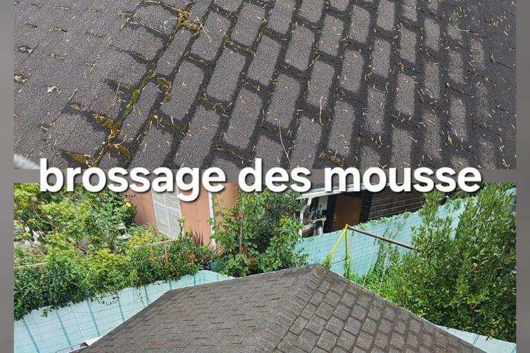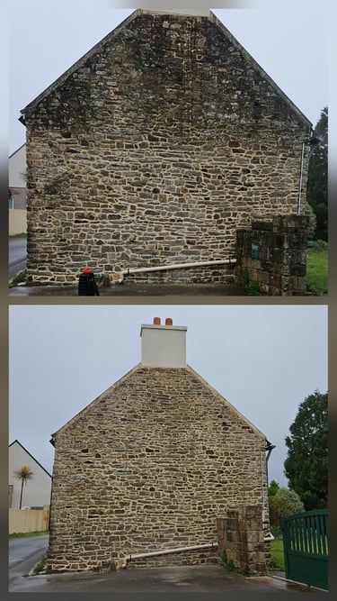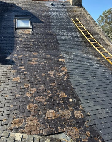 Démoussage toiture, façade, pignons, dallages.